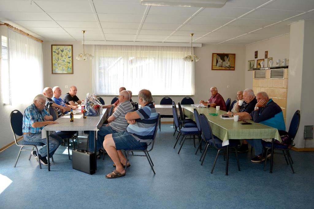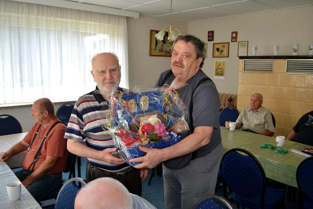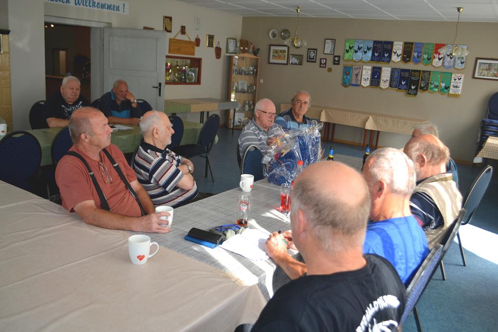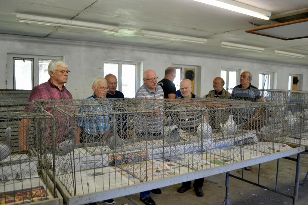 Trotz 8 Entschuldigungen im Vorfeld waren 13 Mitglieder und zwei Gäste mit 30 Tauben um 9:30 Uhr zur Veranstaltung erschienen. Nach der Begrüßung gratulierten wir unserem ältesten Mitglied Bernhard Schulz herzlich mit einem Präsentkorb zu seinem 90. Geburtstag, den er schon im Mai feiern konnte. Nicht vielen Züchtern ist es vergönnt, in diesem Alter noch erfolgreicher Aussteller zu sein oder 80 km mit dem eigenen Auto zur Versammlung zu fahren.
