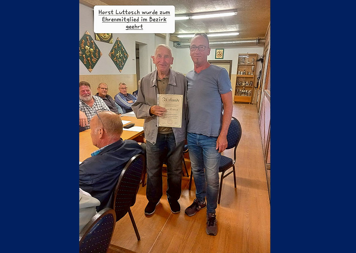 Horst Luttosch wurde für seine langjährige aktive Mitarbeit zum Ehrenmitglied im Bezirk ernannt.