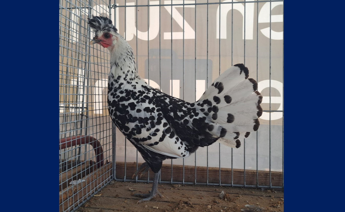 Am Nachmittag führte uns der Weg ein kleines Stück weiter zu Modeneserfreund Cholewa. In seinen Volieren gab es Ziergeflügel und Zwerghühner zu sehen. Und natürlich Modeneser. Hier waren es Schietti schwarz-getigert und gescheckt.