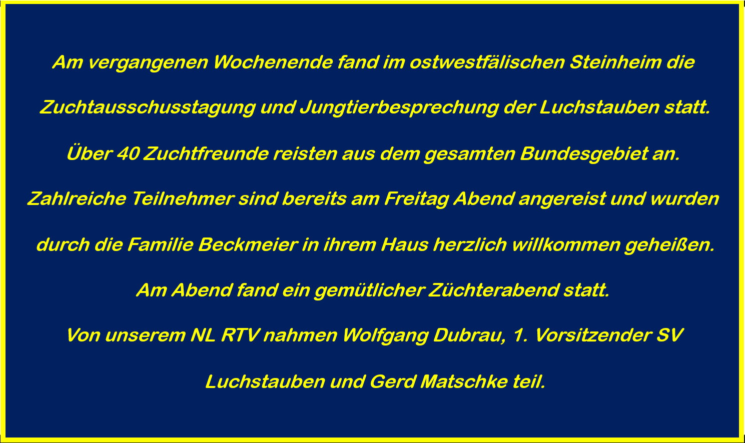 30.09.2025 Zuchtausschusstagung und Jungtierbesprechung des SV Luchstauben in Steinheim